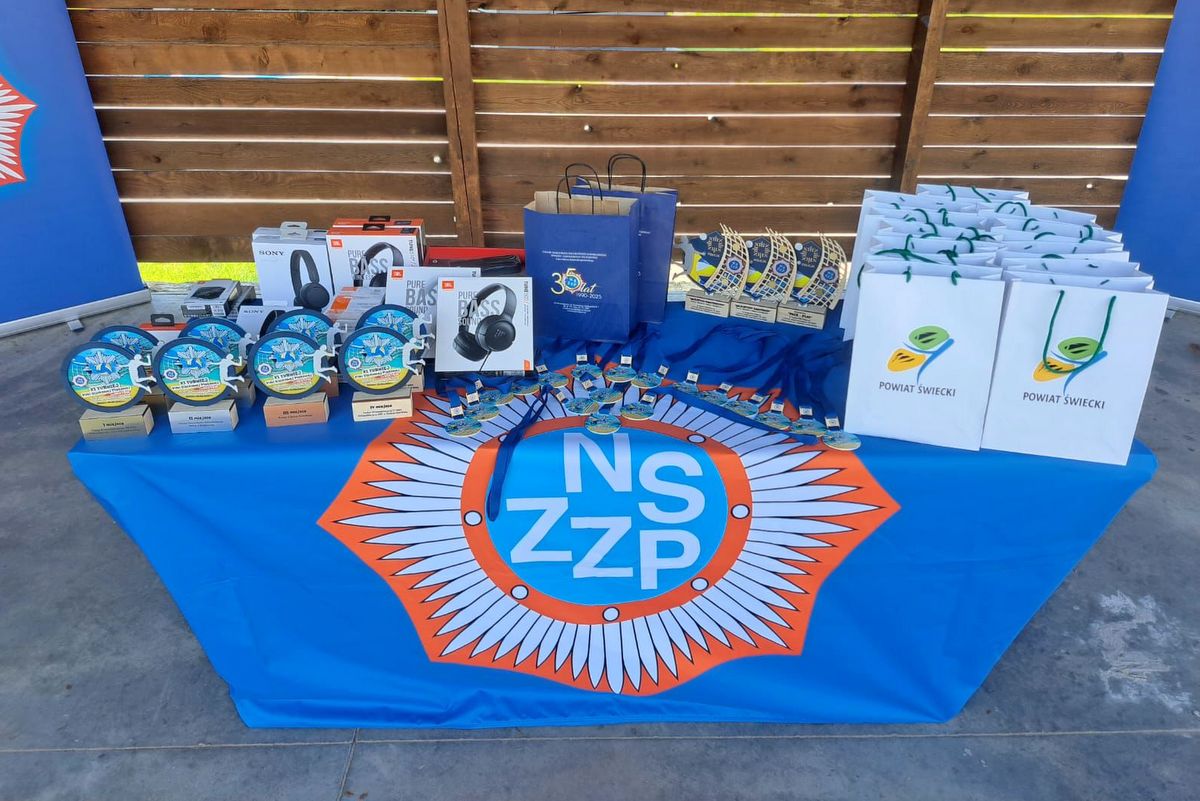 Nagrody wręczali: Zastępca Komendanta Wojewódzkiego Policji insp. Jacek Witas, Przewodniczący ZW NSZZ Policjantów Piotr Kujawa, Komendant Powiatowy Policji w Świeciu insp. Marek Mitura, Wicestarosta świecki Roman Witt oraz Przewodnicząca ZT NSZZ Policjantów w Świeciu Katarzyna Golonka.