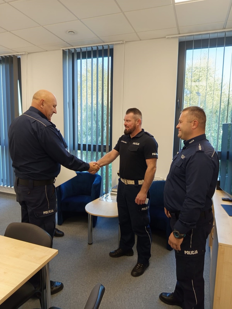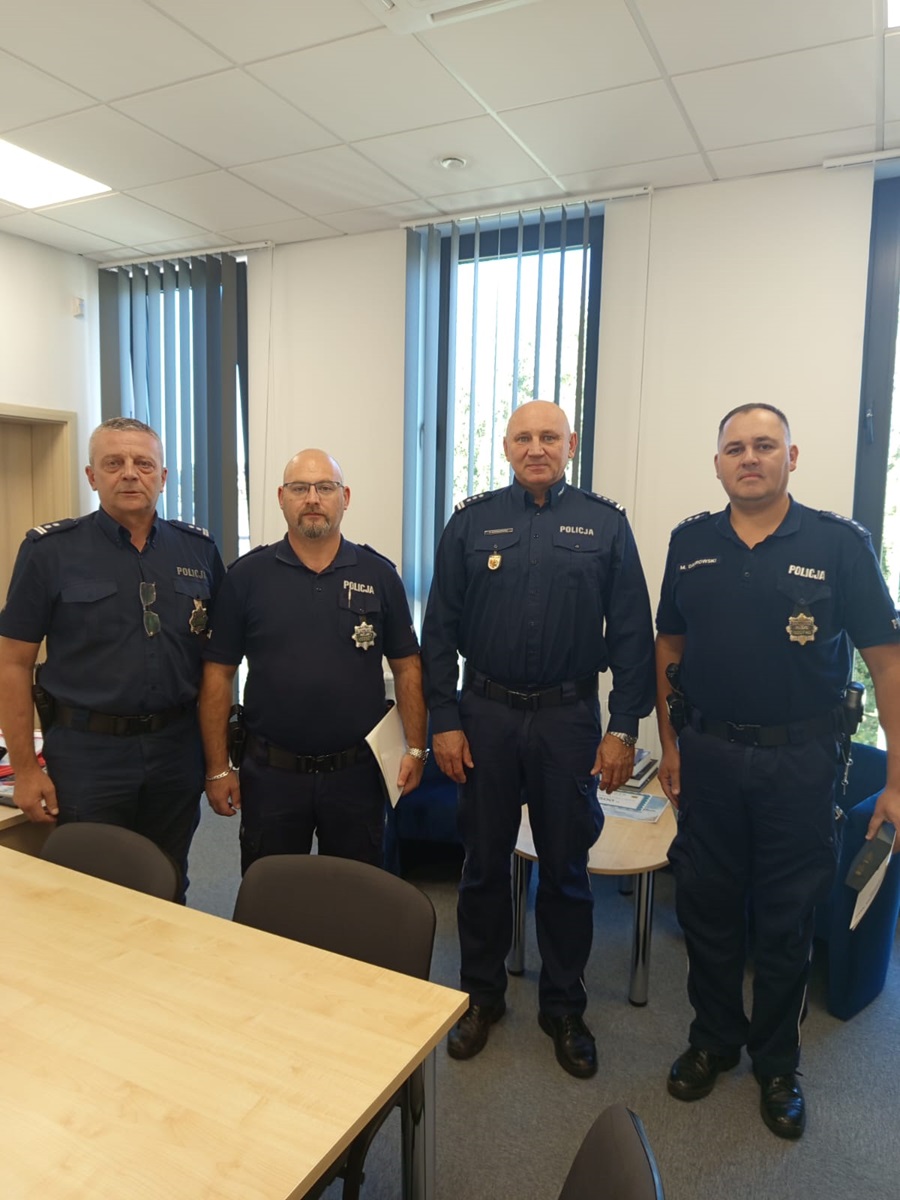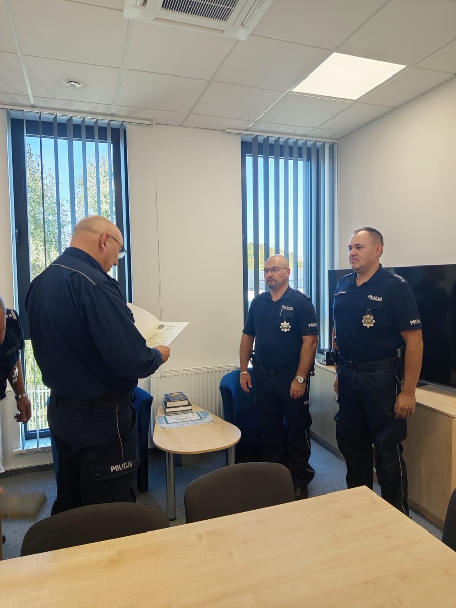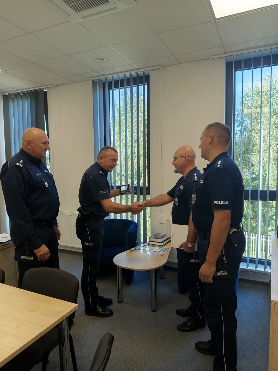 Komendant Powiatowy Policji w Rypinie insp. Paweł Bartoszewski wraz ze swoim I Zastępcą mł. insp. Mirosławem Dąbrowskim spotkali się z policjantami, którzy w tym roku obchodzili jubileusz służby w Policji.