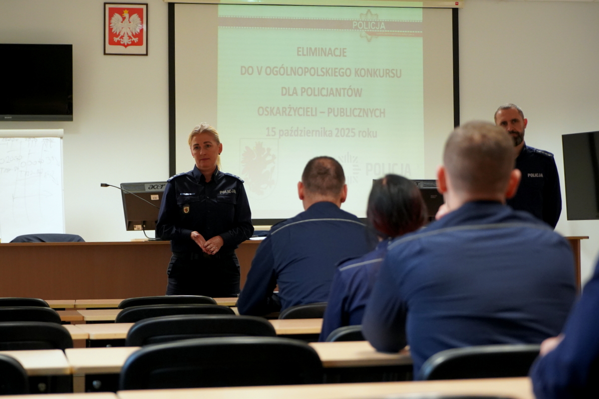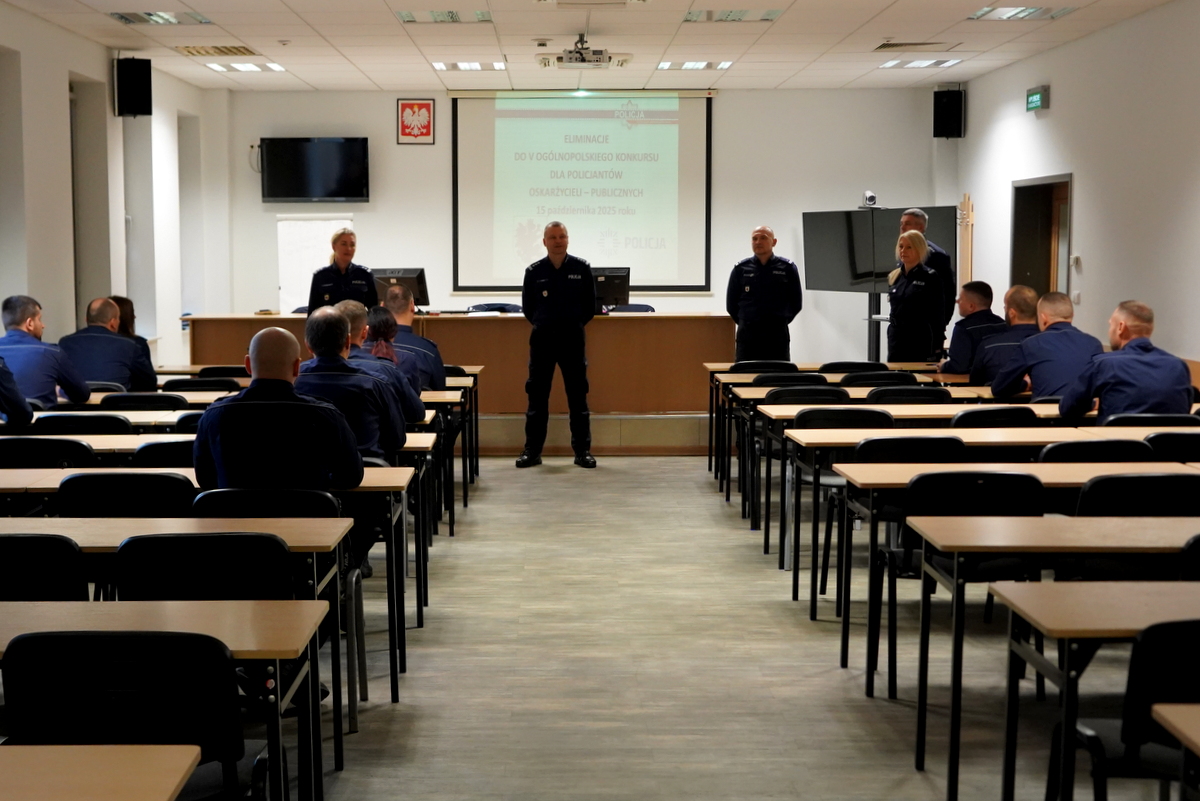 W salach wykładowych na terenie Komendy Wojewódzkiej Policji w Bydgoszczy policjanci-oskarżyciele publiczni zostali poddani ocenie w dwóch konkurencjach: