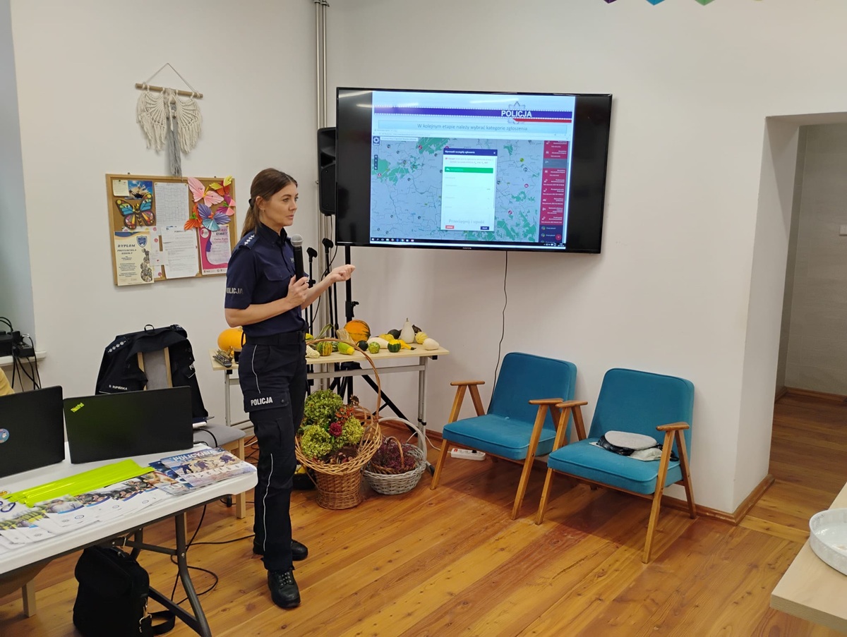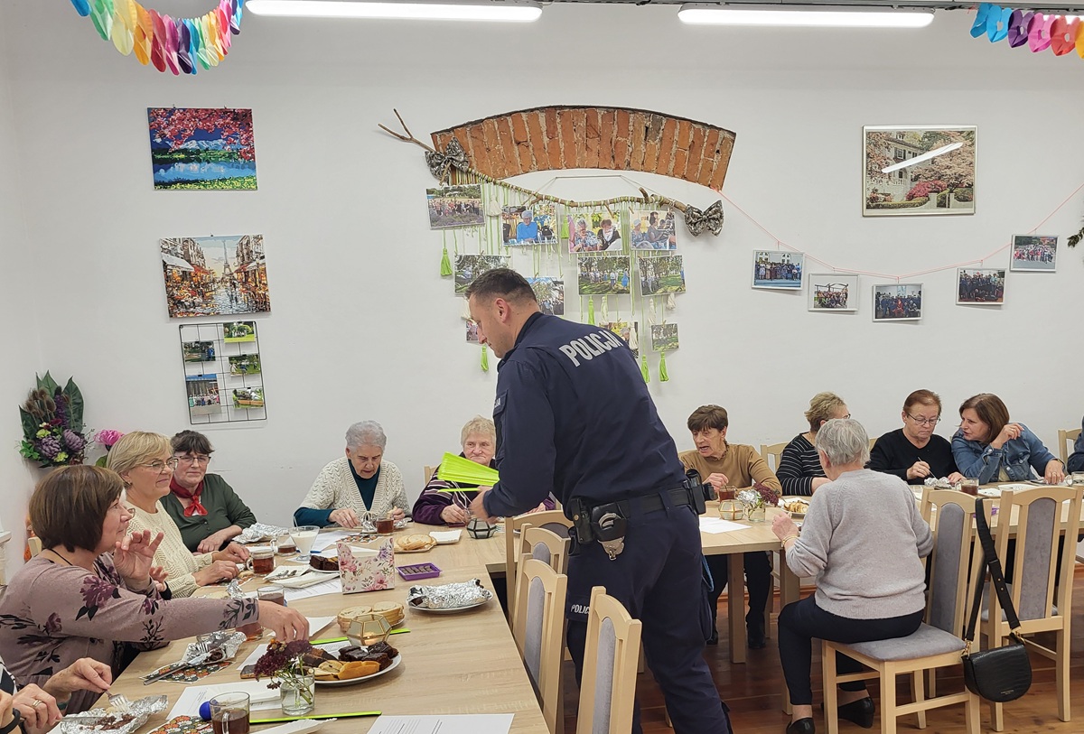 Na zakończenie policjanci rozdali obecnym opaski odblaskowe oraz ulotki informujące, a także drobne upominki.