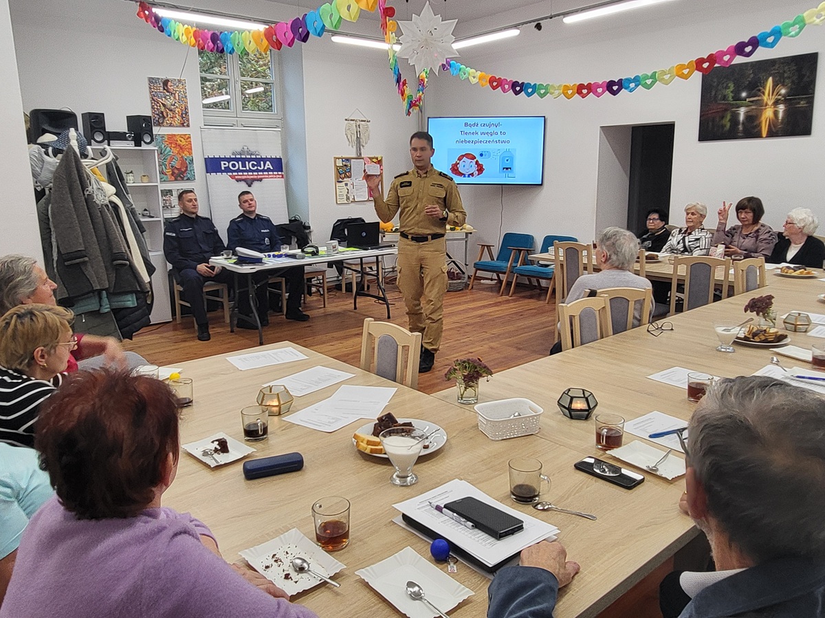 Następnie asp. szt. Dorota Rupińska zaprezentowała słuchaczom zagadnienia związane z ich bezpieczeństwem. Objaśniła różne metody działania przestępców oraz wskazała jak postępować w sytuacji zagrożenia. Asp. Daniel Więckiewicz z Wydziału Ruchu Drogowego omówił bezpieczeństwo podczas poruszania się po drodze. Natomiast mł. asp. Piotr Obarowski z Komendy Powiatowej Państwowej Straży Pożarnej w Rypinie przypomniał przepisy przeciwpożarowe oraz przedstawił zasady działania czujnika tlenku węgla.