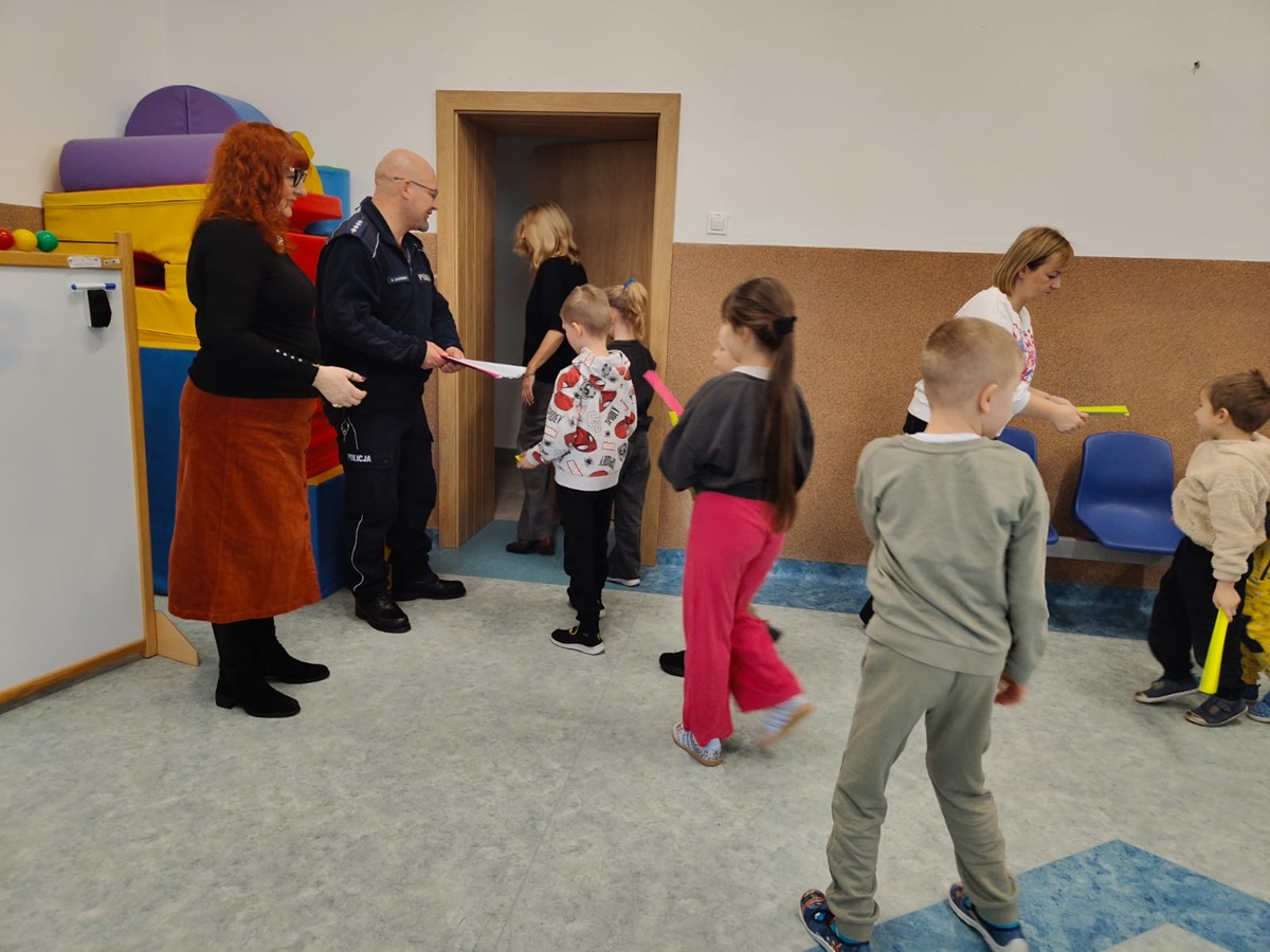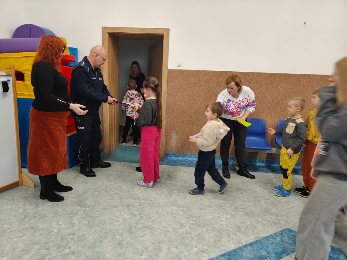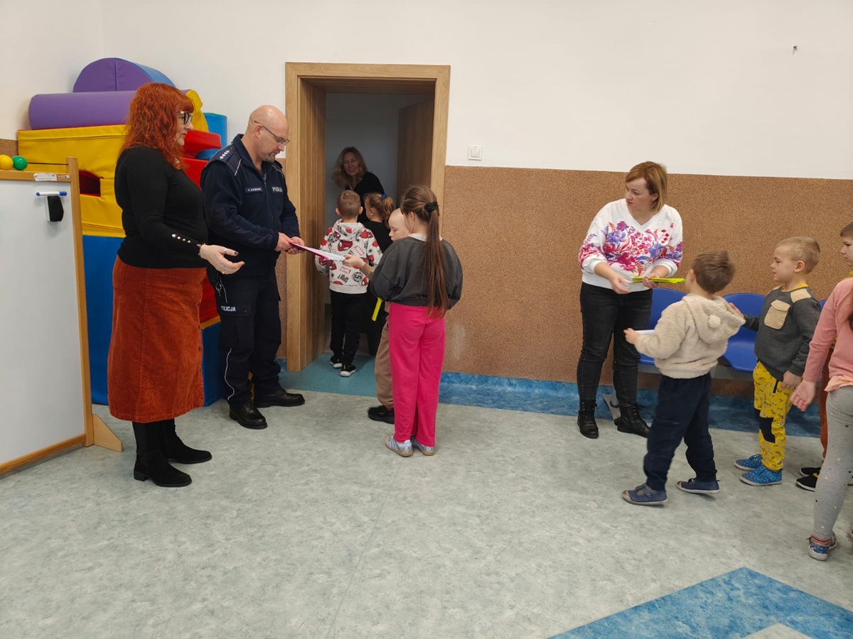 Na zakończenie rozdali wszystkim opaski odblaskowe, by poprawić widoczność najmłodszych na drodze.