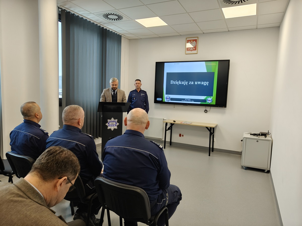 W dniu 16 stycznia 2025 roku w Komendzie Powiatowej Policji w Rypinie odbyła się odprawa roczna. Po złożeniu meldunku Pierwszemu Zastępcy Komendanta Wojewódzkiego Policji w Bydgoszczy insp. Jackowi Witasowi przez Naczelnika Wydziału Prewencji kom. Marka Szczepańskiego Komendant Powiatowy Policji w Rypinie podsumował pracę policjantów powiatu rypińskiego oraz omówił stan bezpieczeństwa na terenie powiatu w minionym roku. W odprawie uczestniczyli przedstawiciele władz samorządowych oraz szefowie instytucji na co dzień współpracujący z Policją. Na odprawę przybyli: Starosta Rypiński Jarosław Sochacki, Wicestarosta Rypiński Monika Kalinowska, Prokurator Rejonowy Jacek Lasiński, Prokurator Prokuratury Rejonowej Magdalena Stefańska- Lach, Sekretarz Miasta Rypin Sławomir Kryszczuk, Wójt Gminy Rypin Janusz Tyburski, Komendant Powiatowy PSP st. bryg. Dariusz Łęgosz.