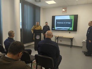 Zastępca Komendanta Wojewódzkiego Policji- insp. Jacek Witas wysoko ocenił pracę policjantów. Podziękował za trud wkładany w codzienną służbę na rzecz bezpieczeństwa i porządku publicznego. Podczas swojego wystąpienia wskazał kierunki pracy do realizacji na rok 2026, które mają przede wszystkim wpłynąć na zwiększenie bezpieczeństwa i porządku publicznego naszego powiatu.