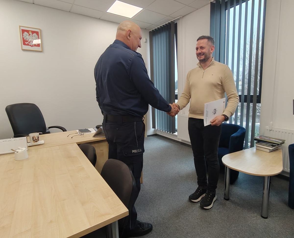 Z okazji jubileuszu Komendant Powiatowy Policji w Rypinie insp. Paweł Bartoszewski wraz ze swoim Zastępcą mł. insp. Mirosławem Dąbrowskim oraz Naczelnikiem Wydziału Kryminalnego podinsp. Izabelą Skirzyńską podziękowali podkom. Mariuszowi Cywińskiemu za długoletnią współpracę, wytrwałość oraz sumienną realizację powierzonych zadań oraz wręczyli list gratulacyjny i miły upominek.
