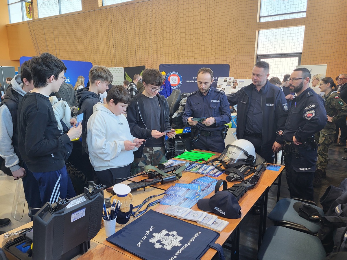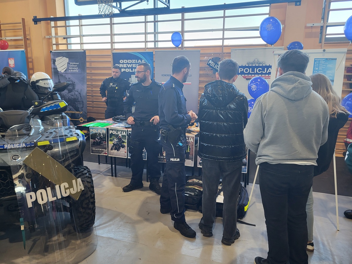 Policyjne stanowisko cieszyło się ogromnych zainteresowaniem uczestników, nie brakowało pytań o służbę oraz osób wiążących swoją przyszłość właśnie z Policją.